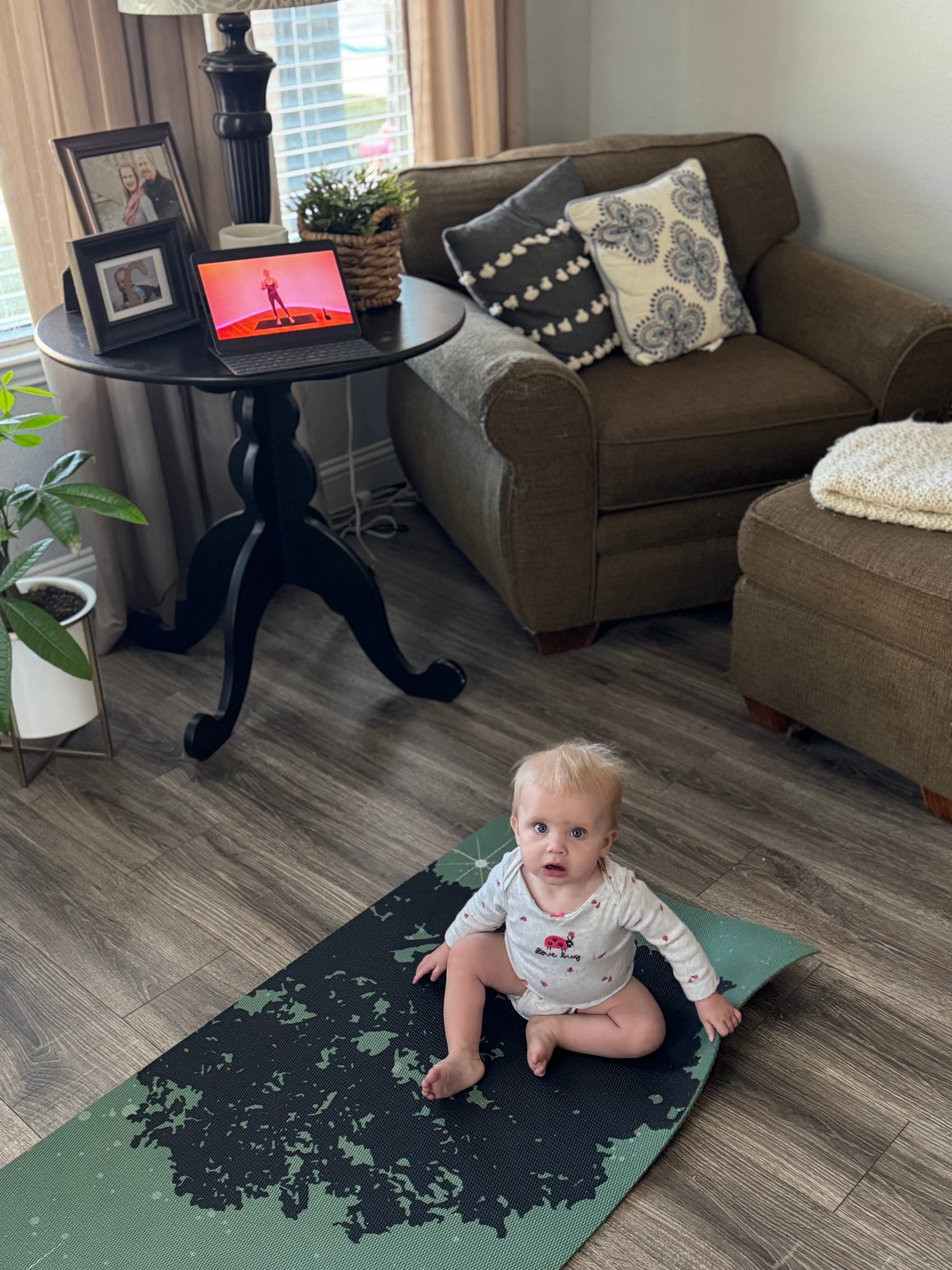 Getting to the mat today with a little underfoot 💕 She’s number 5. I started this MBody journey when there were only 2. Grateful for a sustainable practice as a busy mama!