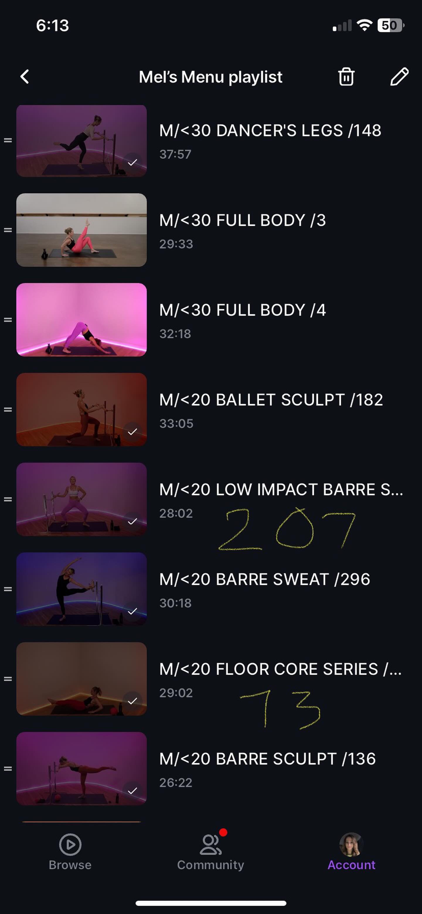 Hi Chloe! I made a playlist a few years ago for a fam member who was carrying her little one and also thinking of postpartum, and it turns out I still have it! Her name is Mel, hence the title, and it’s a Menu instead of a do this in order playlist. No order at all. Just 20-30min classes with a softer vibe, ballet/barre and standing for many.
